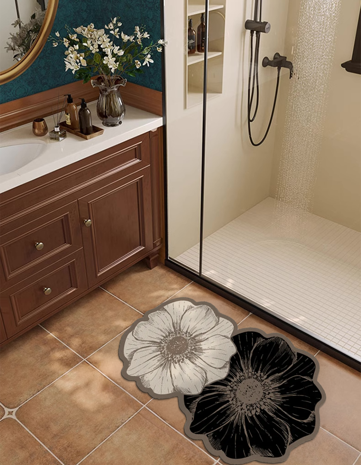 Add a touch of timeless elegance to your bathroom with the Petals & Roses Bath Mat. Featuring a beautifully realistic depiction of two blooming roses, this mat comes in refined color pairings of black and white, black and beige, or beige and white, designed to complement any decor style.