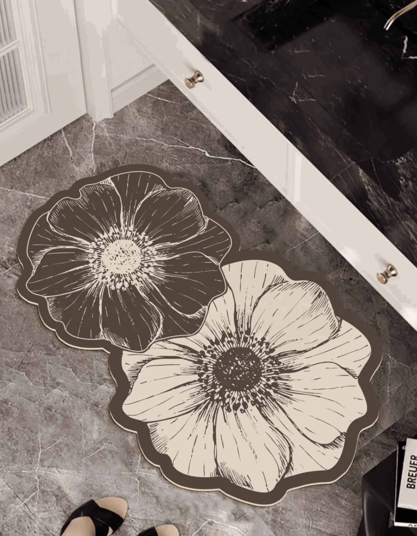 Add a touch of timeless elegance to your bathroom with the Petals & Roses Bath Mat. Featuring a beautifully realistic depiction of two blooming roses, this mat comes in refined color pairings of black and white, black and beige, or beige and white, designed to complement any decor style.