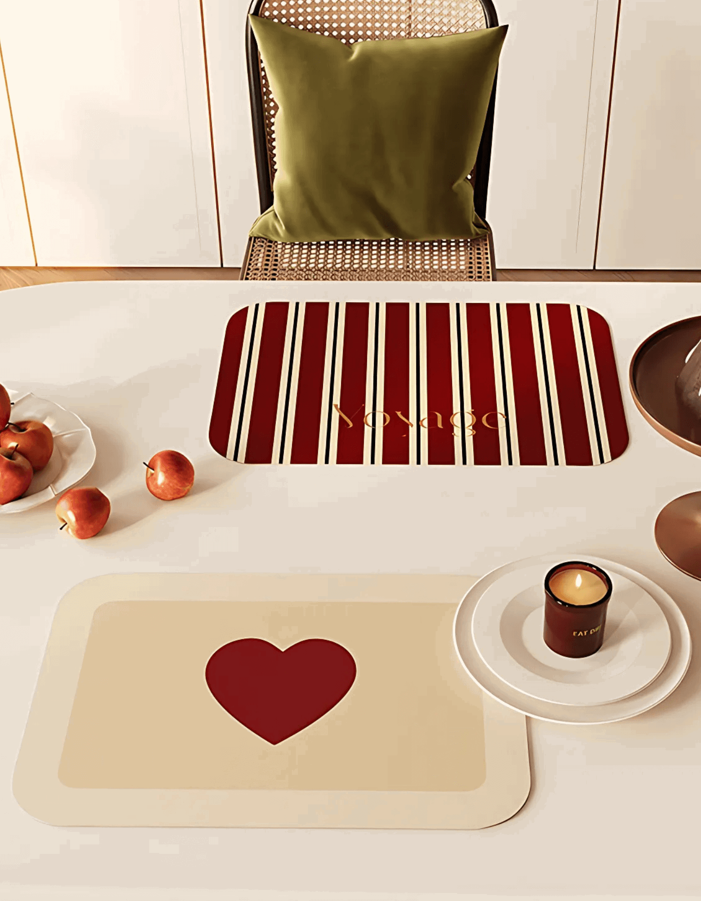 Elevate your dining experience with Maison Matta's Love Charms Place Mat Collection—a perfect blend of classic elegance and modern style. Featuring a variety of designs, from bold red and black heart motifs to sleek stripes, these place mats are available in both round and rectangular shapes to suit any table setting. Whether you prefer the charming heart designs or the contemporary stripes, this collection brings a bold, stylish look to your dining table.